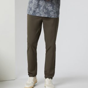 The Cascade Tech Chino Pant is a slim fit men's pant with a water-resistant finish from Vuori. Travel or tee off in our Dark Oregano chinos.