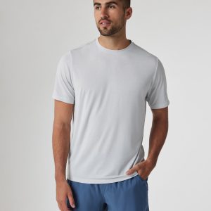 The Current Tech Tee in Frost Grey is a men's lightweight performance shirt that's great for yoga, training, running, and travel. Shop from Vuori.