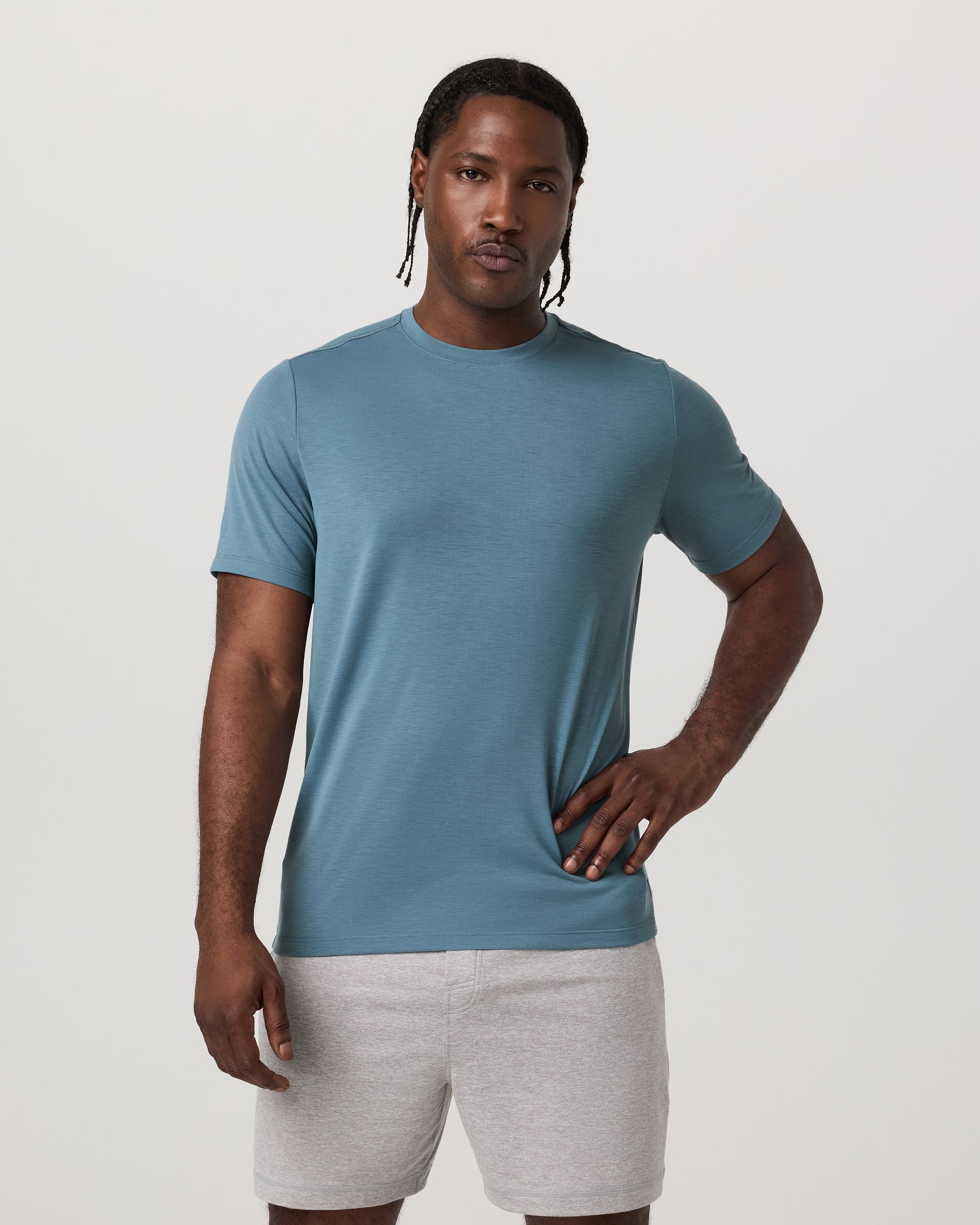 The Current Tech Tee in Frost Grey is a men's lightweight performance shirt that's great for yoga, training, running, and travel. Shop from Vuori.