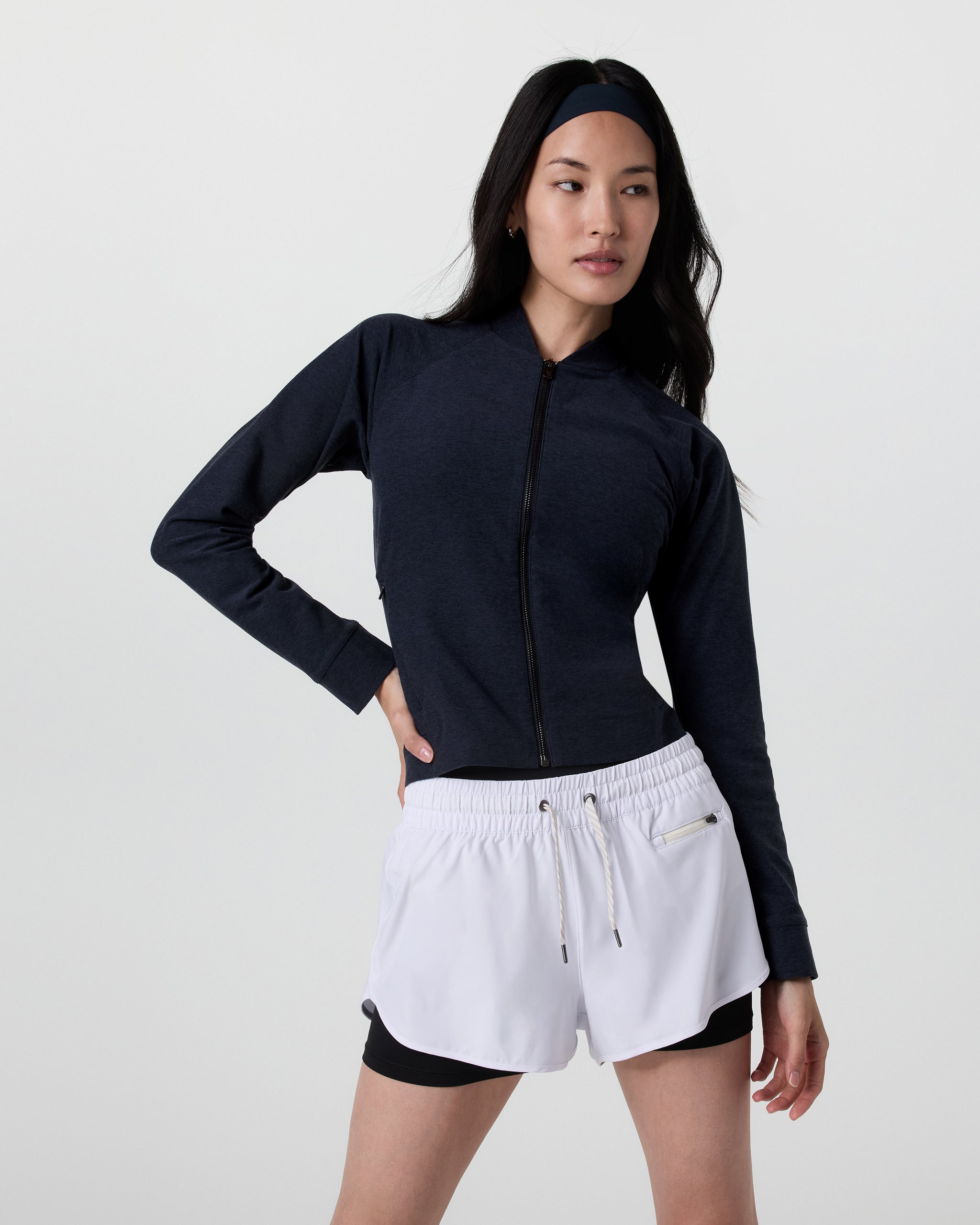 Flattering and tailored for fitness, the Elevation Track Jacket in Black Heather is crafted from a supportive performance stretch knit. Shop from Vuori.