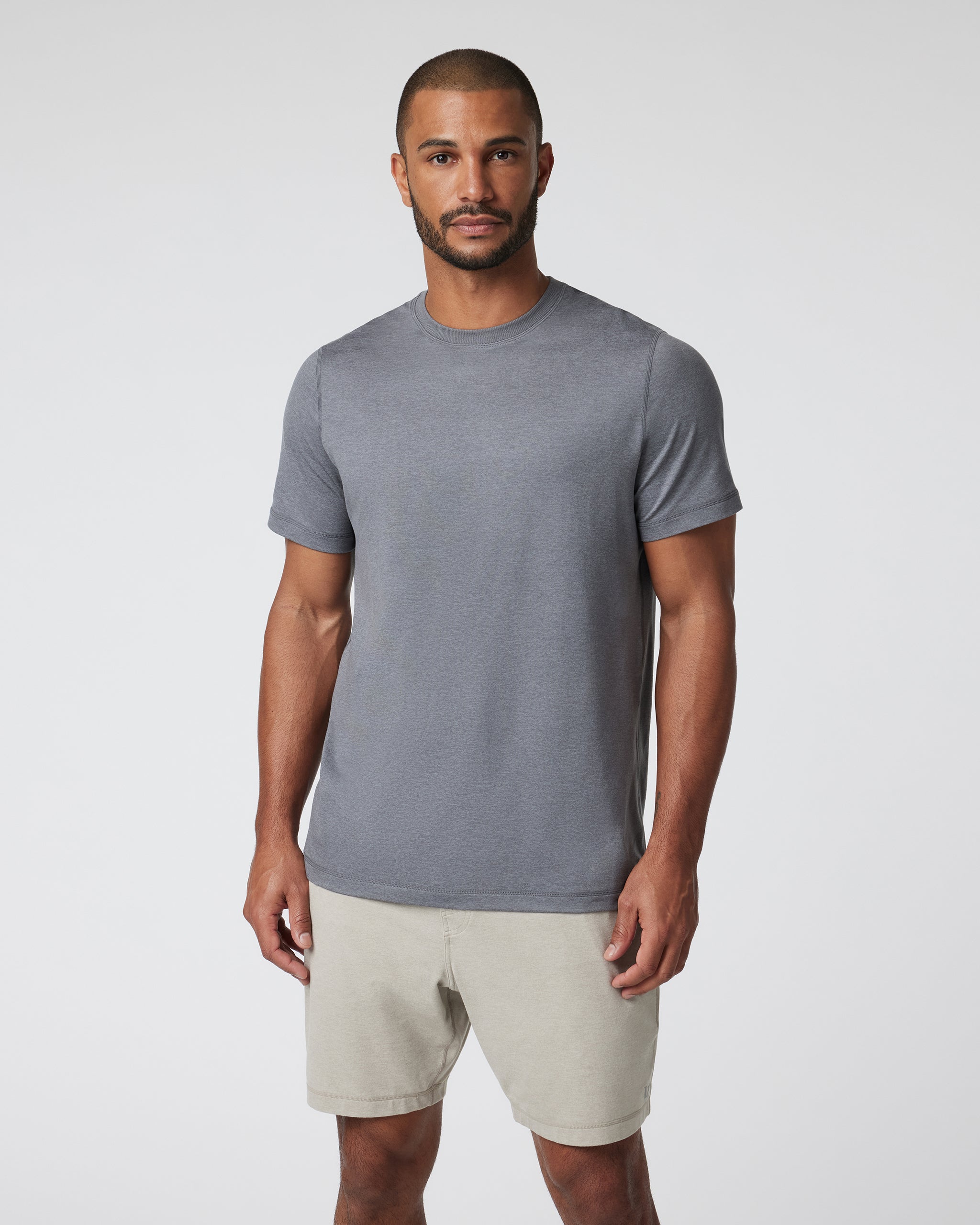 Experience the comfort of our 89% recycled DreamKnit™ fabric with the men's Zinc Heather Short Sleeve Ponto Performance Tee. Shop from Vuori.
