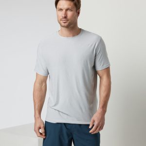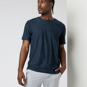 The Strato Tech Tee is the softest workout shirt on the planet and will double as your new go-to. Shop this men's Navy Heather blue tee from Vuori.