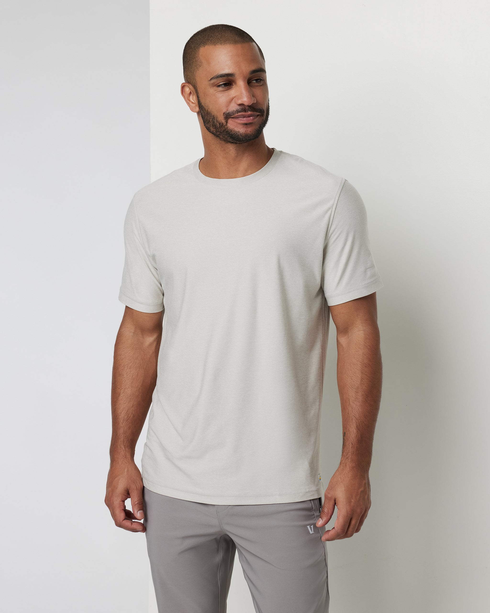 The Strato Tech Tee is the softest workout shirt on the planet and will double as your new go-to. Shop this men's Cashew Heather shirt from Vuori.