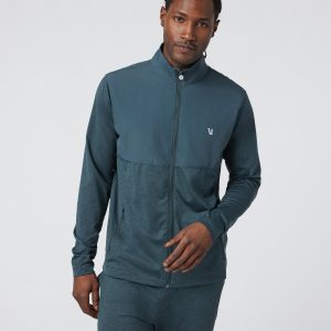 The Sunday Element Track Jacket is an easy-to style men's Grove Heather athletic jacket made from a mostly recycled 4-way stretch knit. Shop from Vuori.