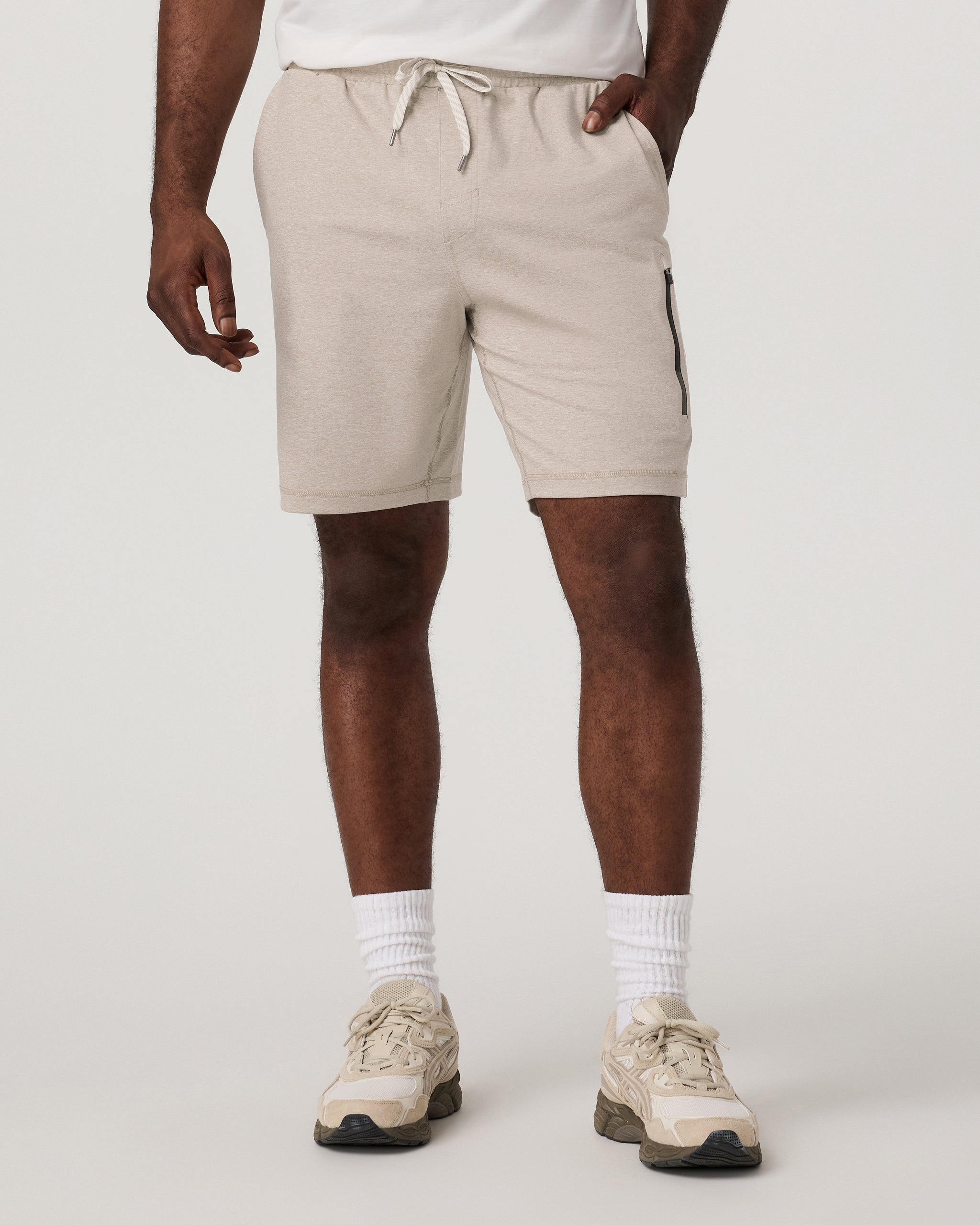 The Sunday Performance Short 8.5" features a longer inseam for added coverage and comfort. Shop these men's Grey Heather athletic shorts from Vuori.