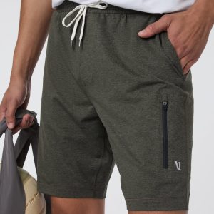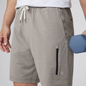 The Sunday Performance Short 8.5" features a longer inseam for added coverage and comfort. Shop these men's Mocha Heather athletic shorts from Vuori.