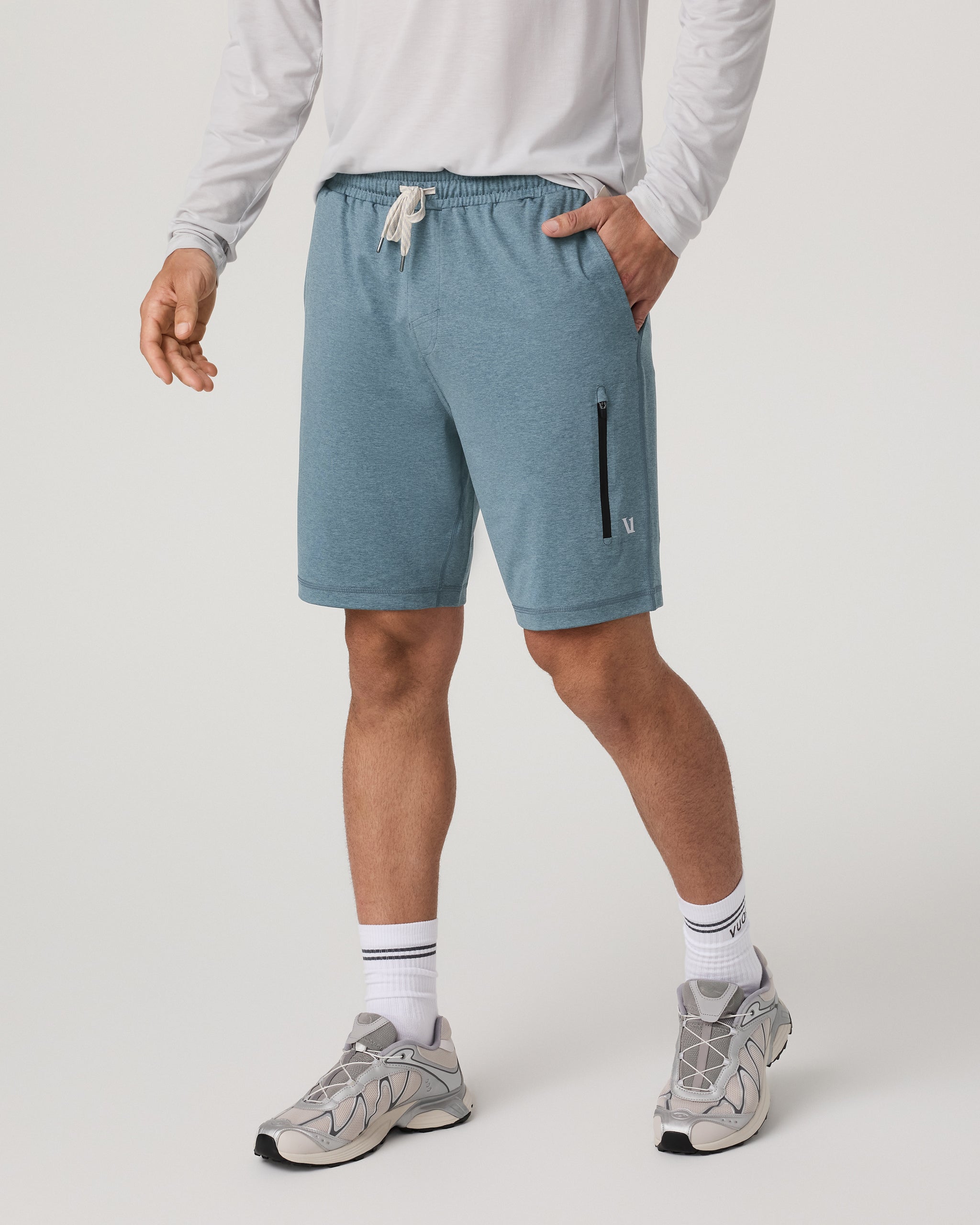 The Sunday Performance Short 8.5" features a longer inseam for added coverage and comfort. Shop these men's Grey Heather athletic shorts from Vuori.